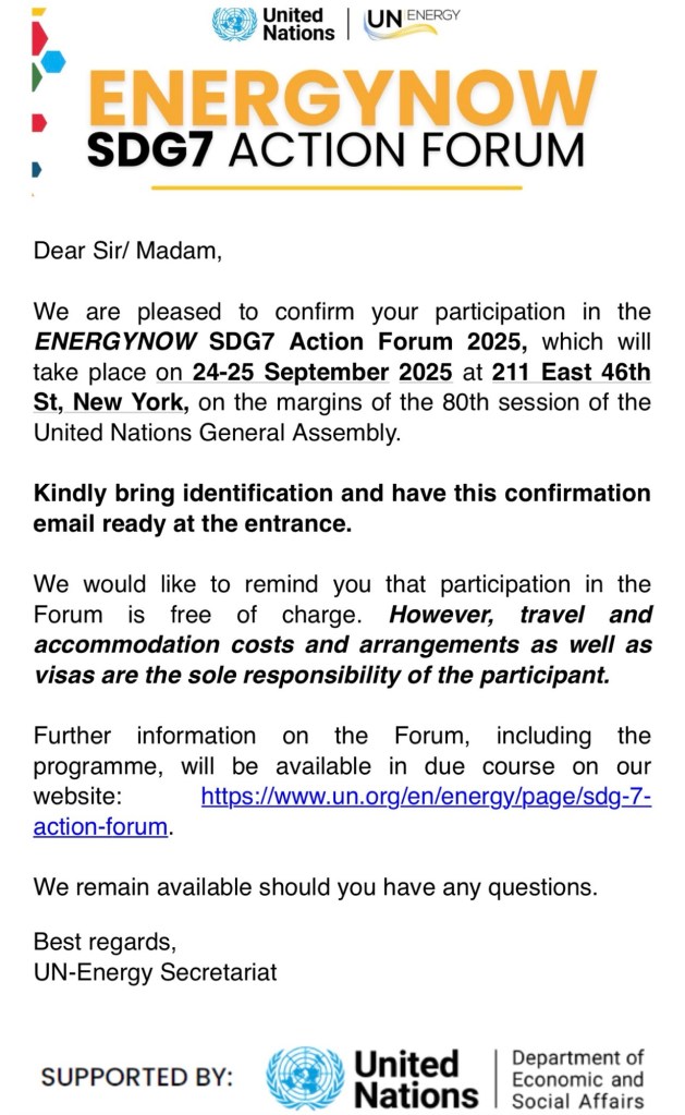 Our Director General attended the Commemoration of the UN@80: A Living Legacy, taking place on Friday, 19 September 2025, from 6:30 p.m. to 7:30 p.m. in the General Assembly Hall at United Nations Headquarters. We confirm your registration and are looking forward to receiving you tomorrow at the United Nations.